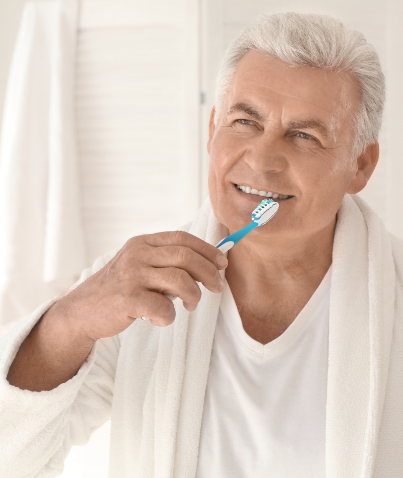Codziennie należy także czyścić dziąsła oraz język, nawet jeśli senior nie ma własnych zębów.