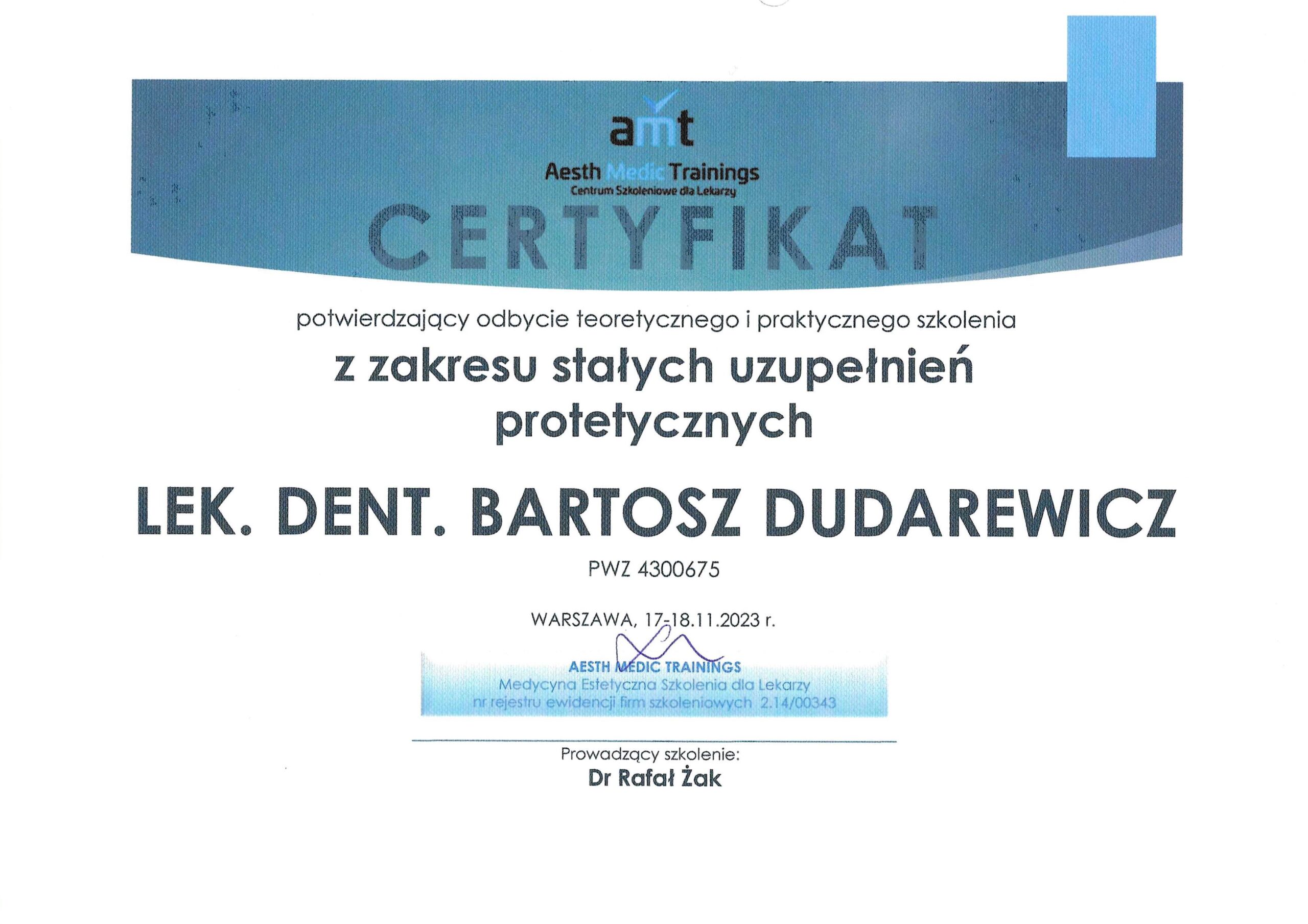lekarz stomatolog Bartosz Dudarewicz